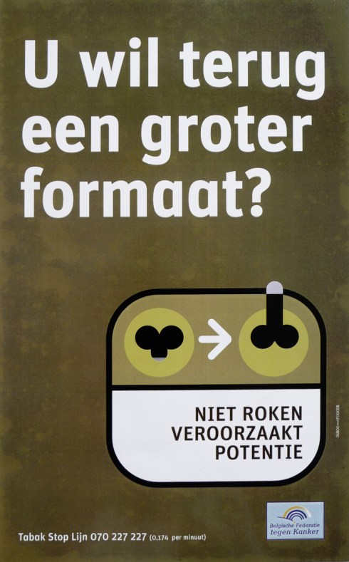 ANTI SMOKING – BIGGER SIZE Posted on 13/09/201030/10/2010 by flowris Posted in Advertising We hebben ingespeeld op de formaatswijziging van de Standaard. De krant veranderde een maand geleden naar een kleiner formaat. Copy: Steven Goedhart Standaard Solidariteitsprijs: Shortlist 2005