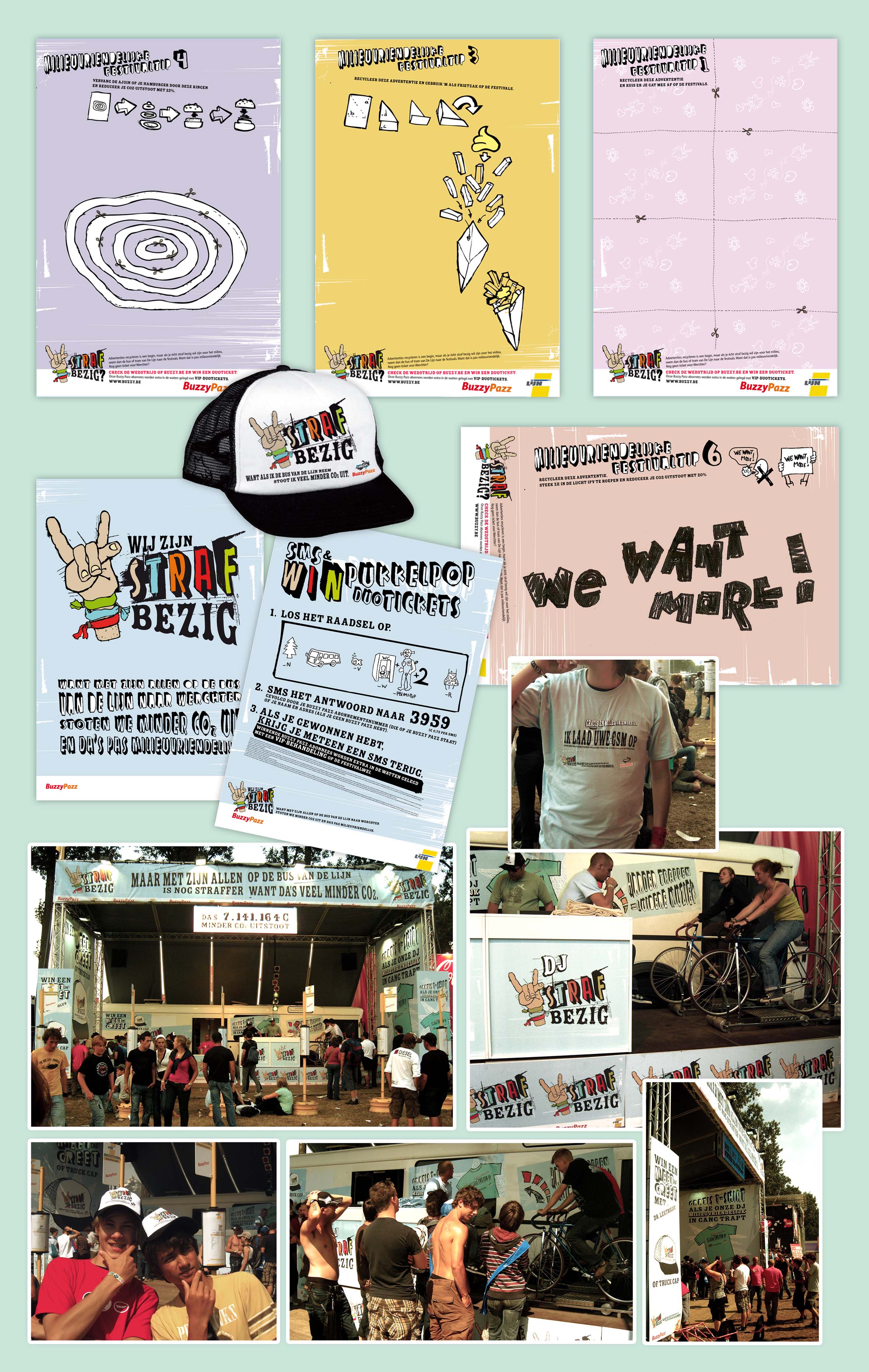 BUZZY PAZZ – STRAF BEZIG Posted on 04/10/201029/01/2023 by flowris Posted in Advertising, commercial work, music festival Buzzy thanked everyone who came to the festival by bus and saved the climate a bit by doing so. We had an ecological DJ booth power-driven by youngsters on bicycles. The faster you rode the louder the music. Copy: Kristin Berckmans
