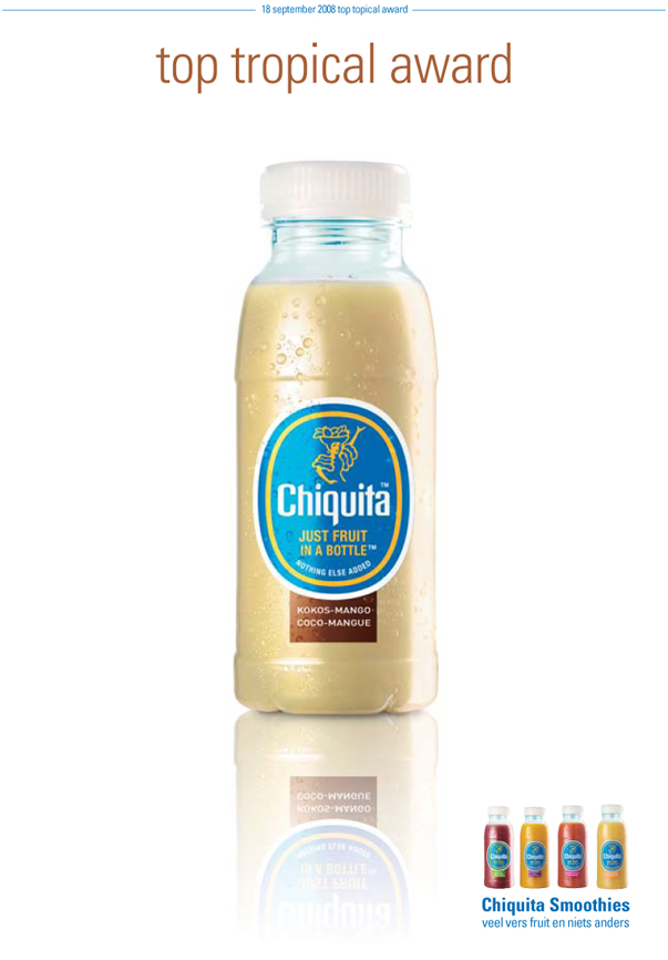 CHIQUITA – TOP TrOPICAL Posted on 20/10/201030/10/2010 by flowris Posted in Advertising A proposal for the first top-topical on a top-topical. Concept: Now the smoothie itself is an award. So we gave one to the ad people (influencers and the best target group) during the Top Topical awardshow.