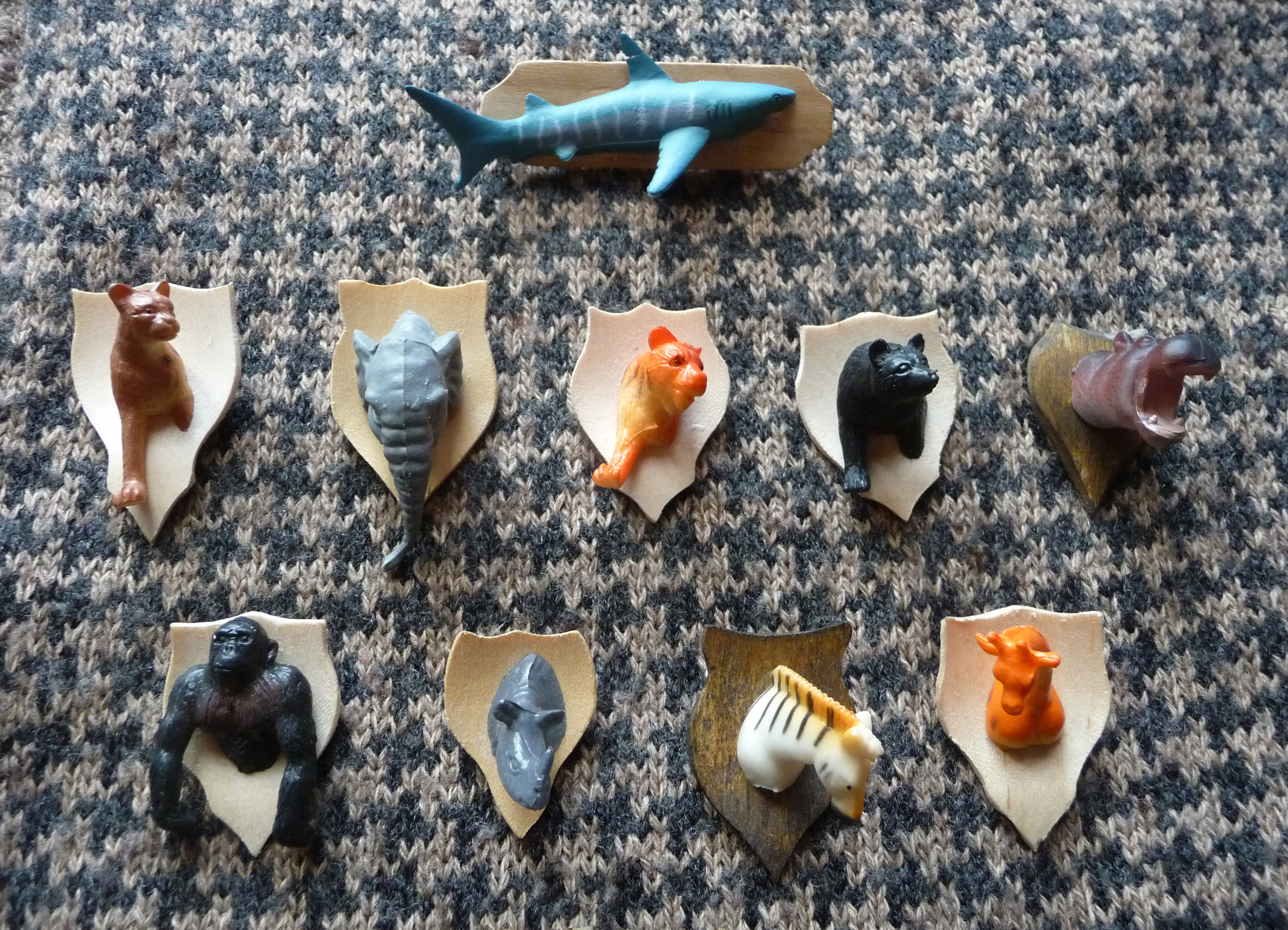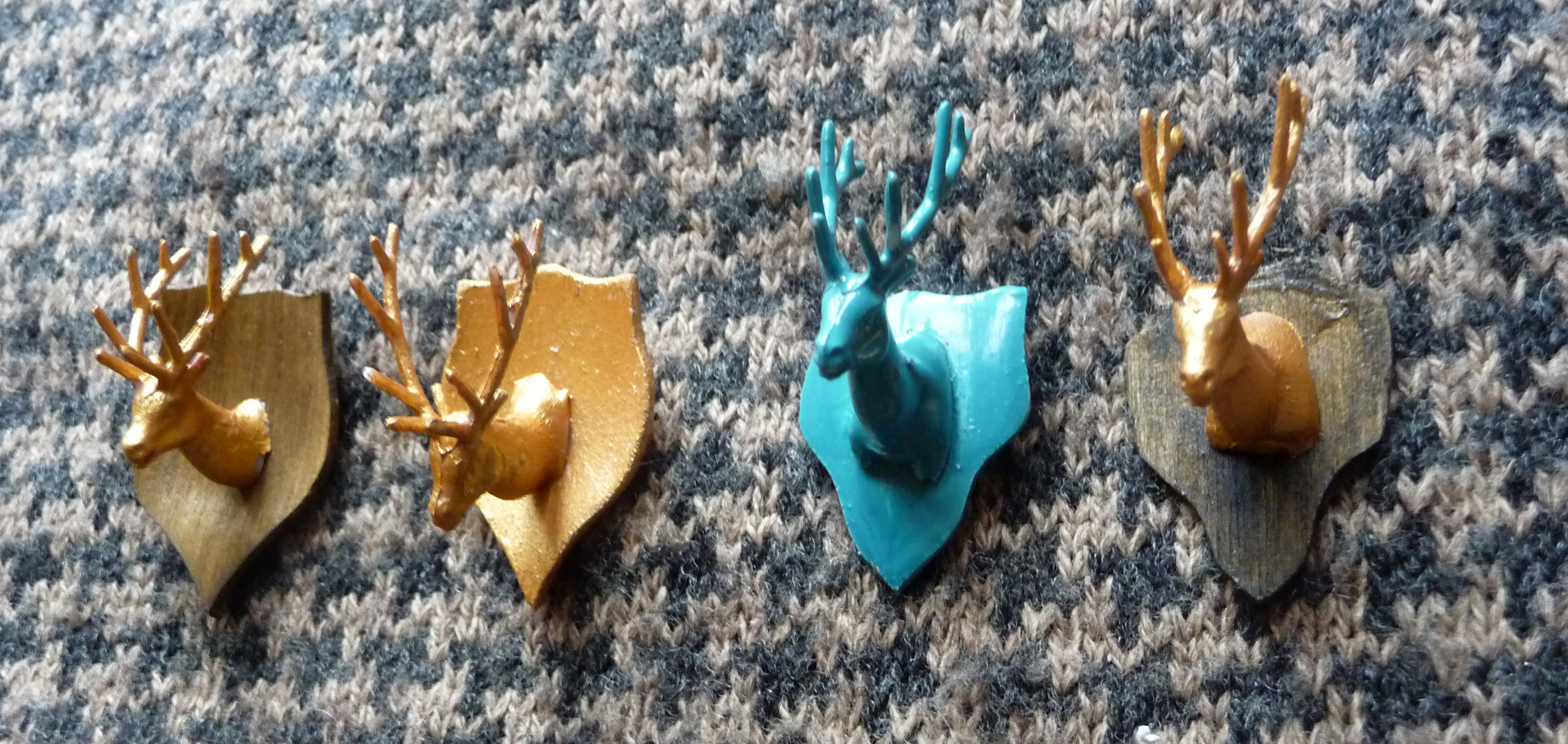 hunting trophy pins /safari/pimped deers Posted on 18/12/201105/05/2015 by flowris Posted in Free Work, pinsTagged deer, hunting trophy Broches made of wood/toys/paint/killed childhood :)